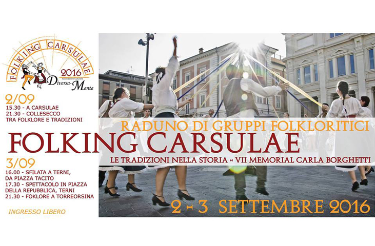 Saranno ben sette i gruppi folkloristici attesi per l'edizione 2016 di "Folking Carsulae" provenienti da Umbria, Marche, Lazio, Trentino Alto-Adige e Sicilia, ma anche Galles e Bosnia-Erzegovina.