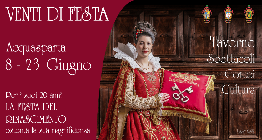 Venti di Festa per i vent’anni della Festa del Rinascimento, dall’8 al 23 giugno 2019 ad Acquasparta.