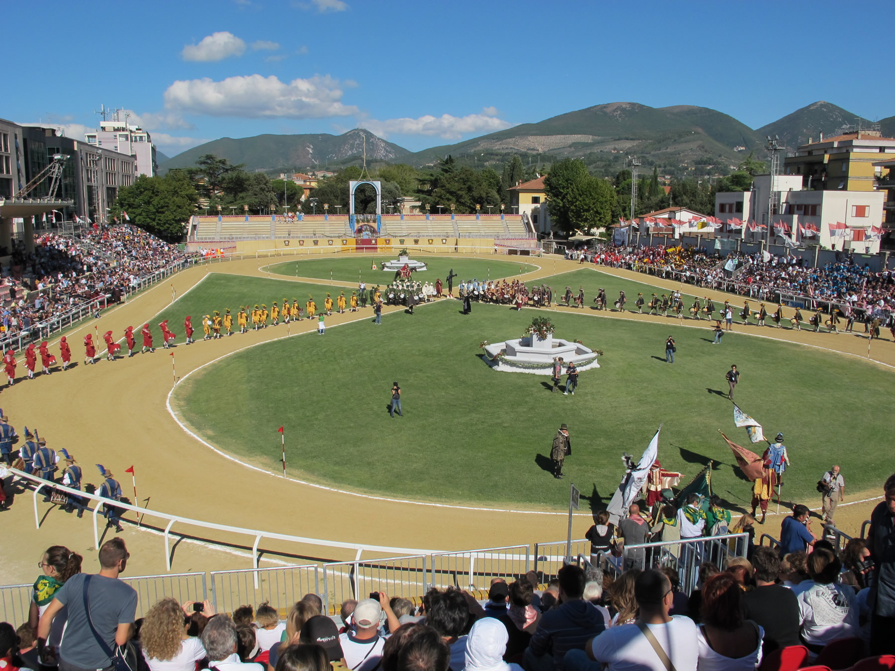Una sfida unica, anticipata dallo spettacolare corteo storico che, prima della Giostra, sfila per le vie del centro: un salto indietro nel tempo tra dame e cavalieri in splendidi abiti barocchi.
