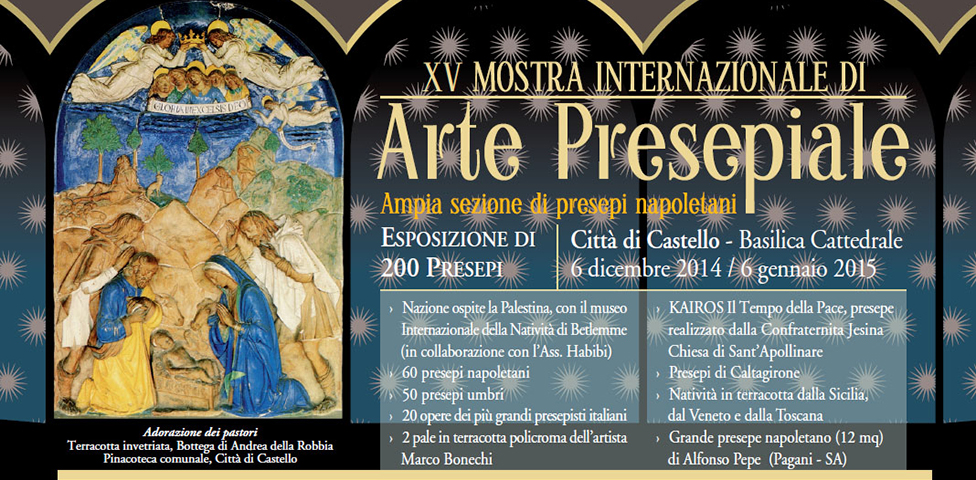 Ritorna puntualmente a Città di Castello la Mostra Internazionale di Arte Presepiale che per un mese intero si svolgerà nella Cattedrale e che avrà l'onore di avere in questa edizione la Palestina come Nazione ospite, con il Museo Internazionale della Natività di Betlemme, in collaborazione con l' Ass. Habibi.