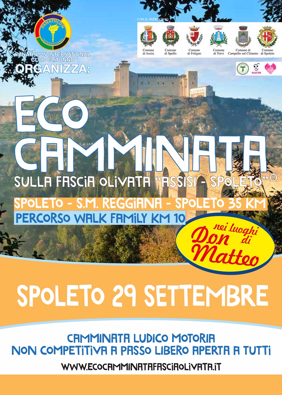 Domenica 29 Settembre si svolgerà la camminata ludico motoria a passo libero non competitiva sulla fascia olivata Assisi-Spoleto. Aperte le iscrizioni per l’ormai famosa “Ecocamminata sulla fascia olivata Assisi-Spoleto”, in programma quest’anno interamente in territorio spoletino, domenica 29 settembre.