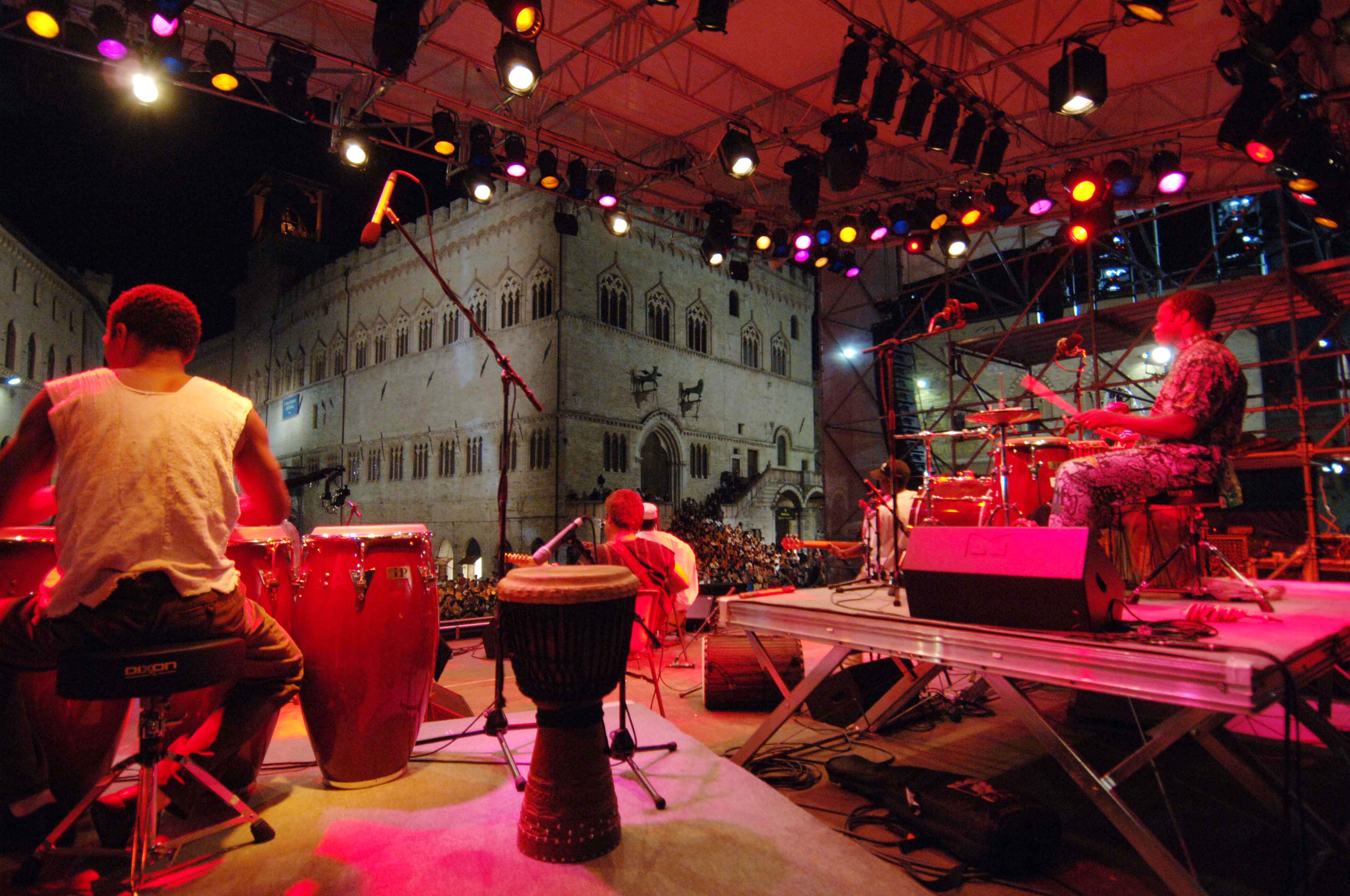 Piazza IV Novembre, cuore della vita civile e religiosa della città è anche il cuore di Umbria Jazz. Qui il palco è stato sempre presente, fin dalla prima edizione del 1973. La storia di Umbria Jazz è passata per la piazza, e, a proposito di storia che continua, vale la pena ricordare che quest’anno Gianluca Petrella porterà in Pazza IV Novembre la sua Cosmic Renaissance ispirata alla musica e alla figura di Sun Ra, che in quella stessa piazza suonò nel ‘73.