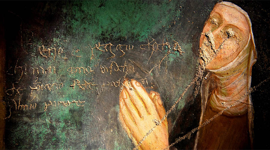 Da regione di transito, l’Umbria divenne meta di pellegrinaggi. Negli edifici religiosi comparvero i primi graffiti, spesso opera di pellegrini e viandanti. Non solo graffiti devozionali, ma anche scritture di memoria, commemorative, di carattere pratico e d’intento cronachistico che tramandano avvenimenti storici ed eventi naturali, ma anche vicende private o legate più strettamente alla sfera del personale.