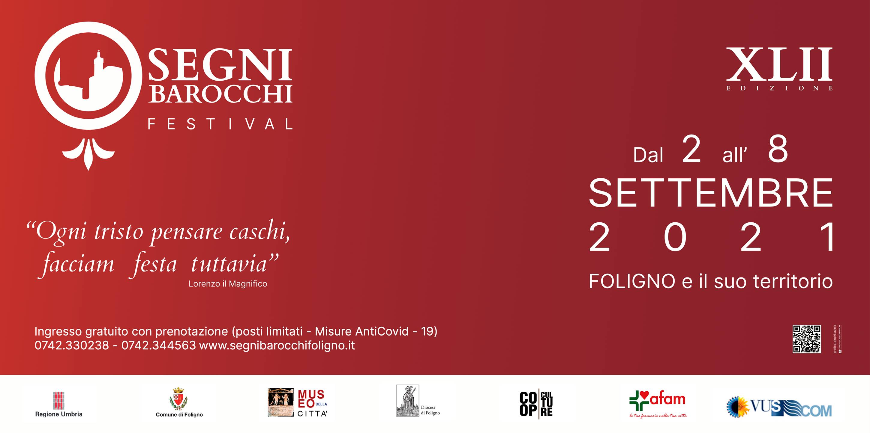 Il Festival Segni Barocchi, dopo le Pillole del 2020, ritorna a proporsi come Festival Nazionale di riferimento per la musica, la danza e la prosa barocca, aprendo le collaborazioni con l’Istituto Superiore di Studi Musicali G. Briccialdi di Terni, per i corsi di strumento e canto e con la coreografa Bruna Gondoni, nome internazionale di rilievo per le Danze storiche. Un’edizione per forza di cose “ridotta”, per via delle restrizioni in atto a livello globale che limiterà la presenza di artisti stranieri ma che confermerà tutta la valenza artistica di quelli italiani.
