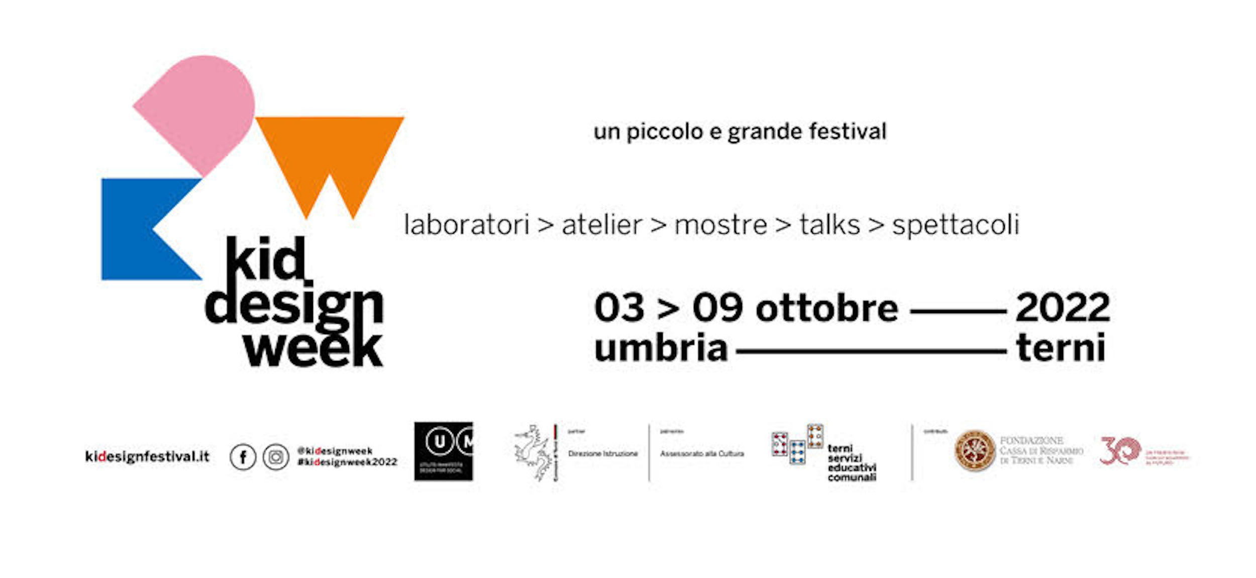 Dal 3 al 9 Ottobre a Terni torna Kid Design Week, il festival della creatività per grandi e bambini: un invito a disegnare, dando spazio alla meraviglia, alla percezione personale della realtà, alla propria creatività.