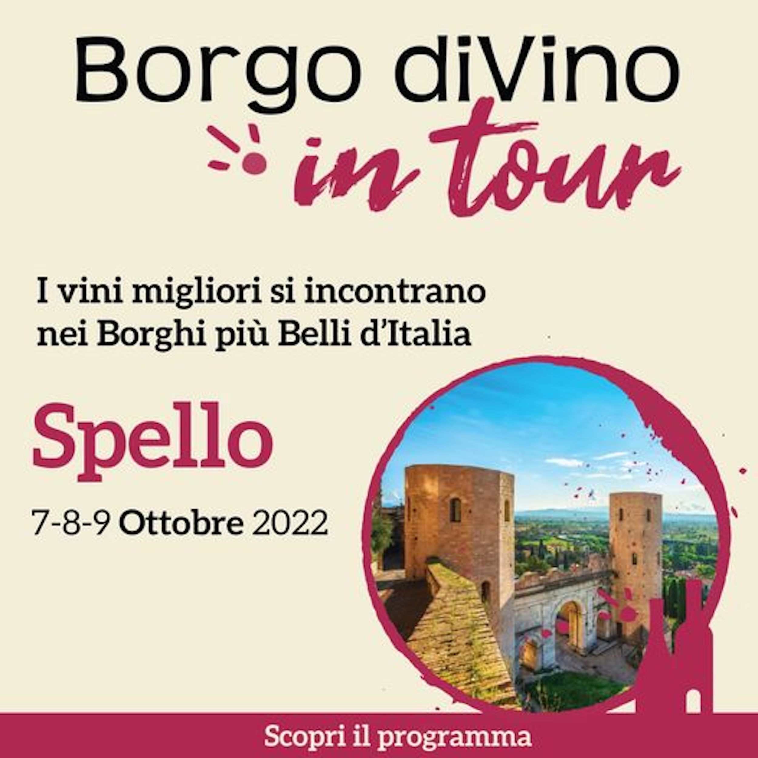 Il fine settimana del 7, 8, 9 Ottobre a Spello, città d’arte e dei fiori, arriva la decima ed ultima tappa della kermesse enologica Borgo DiVino in Tour.