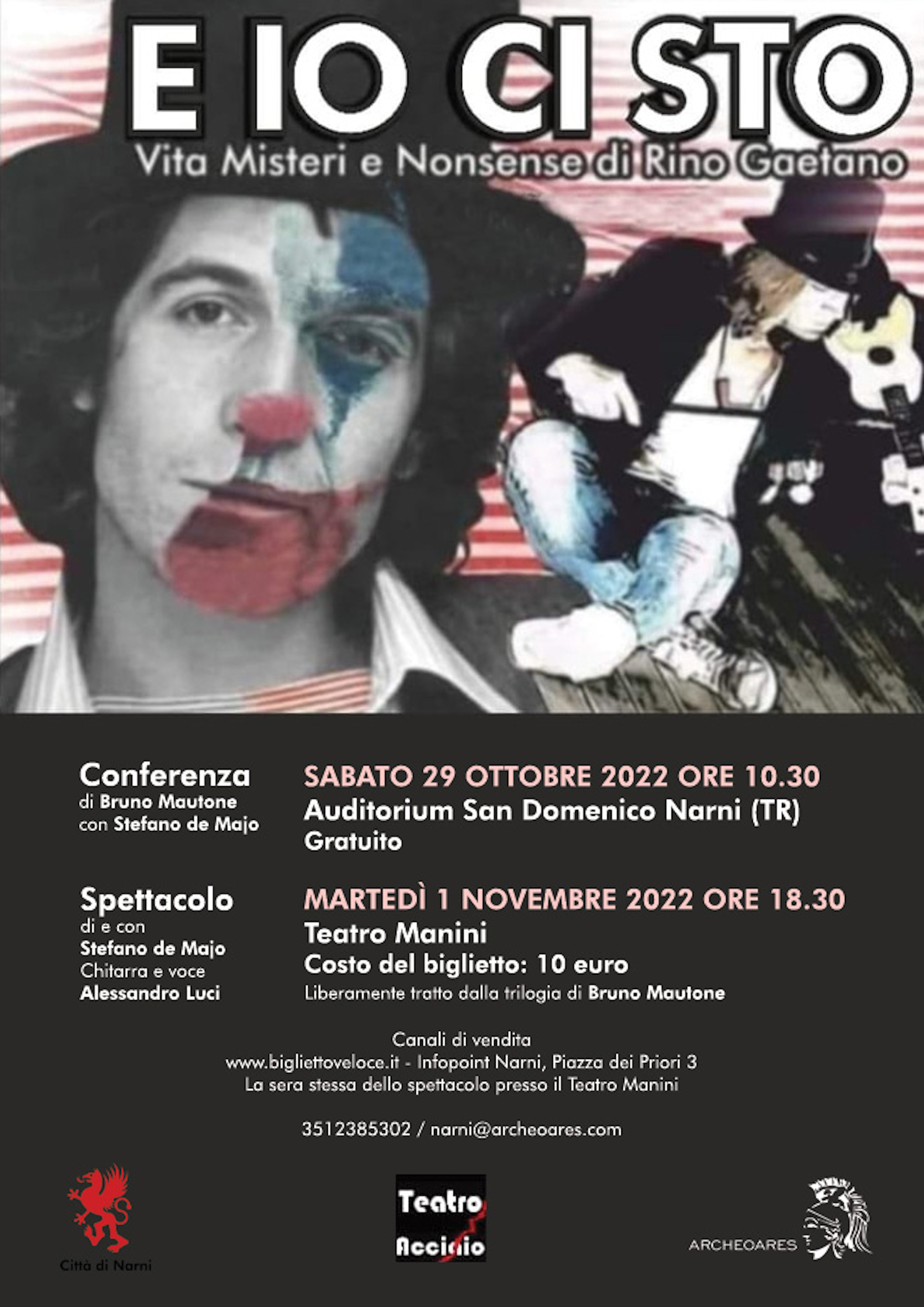 Come introduzione allo spettacolo si terrà una conferenza, Sabato 29 Ottobre, il giorno di nascita di Rino Gaetano, alle 10.30, presso l’Auditorium Bortolotti (ex Chiesa di San Domenico). Un incontro gratuito e aperto a tutti, rivolto in particolare agli studenti, a cui parteciperà Bruno Mautone, autore della trilogia divenuta un best seller da cui lo spettacolo è tratto, che presenterà la sua inchiesta editoriale, insieme a Stefano de Majo, autore e attore dello spettacolo.