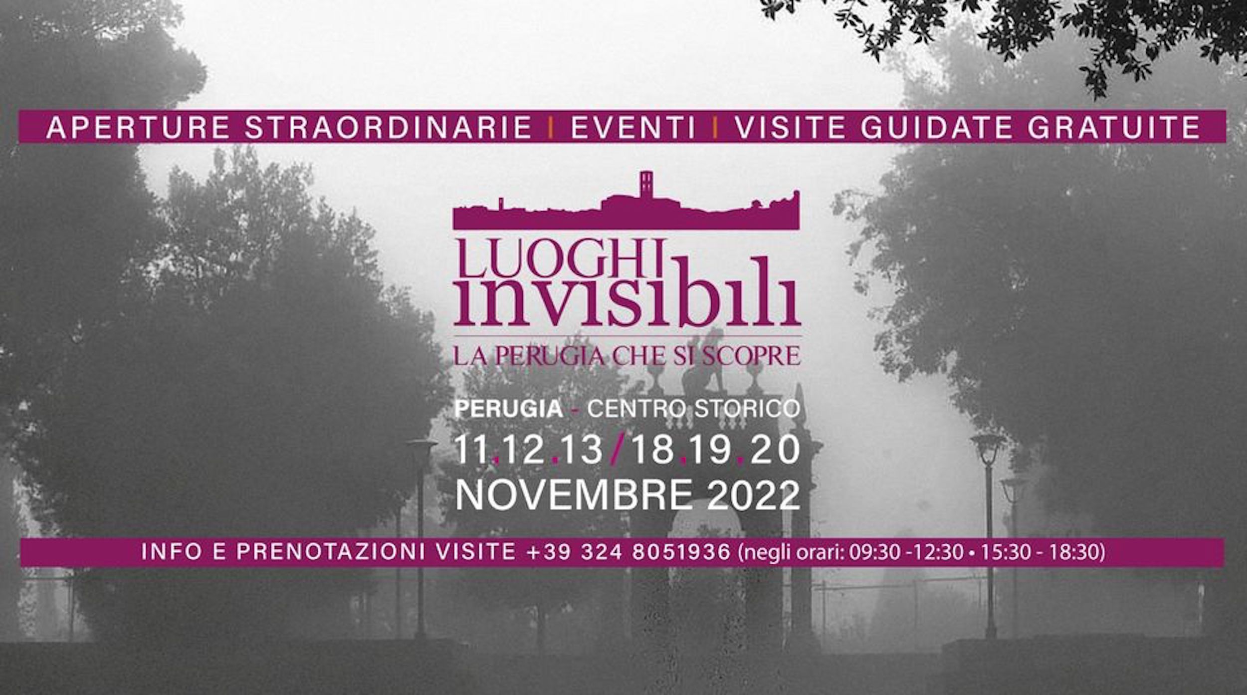 Dall’ 11 al 13 e dal 17 al 20 Novembre a Perugia, torna Luoghi invisibili con le sue aperture straordinarie per scoprire insieme il lato meno conosciuto della città.